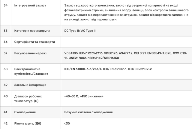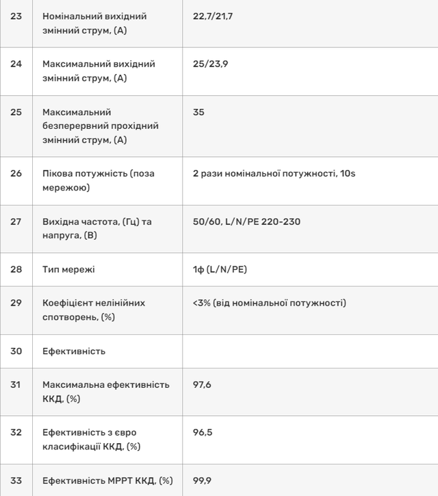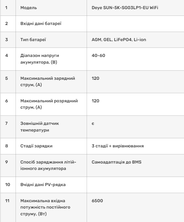 Технические характеристики Deye SUN-5K-SG03LP1-EU WiFi (5 kW, 1 фаза, 2 MPPT):